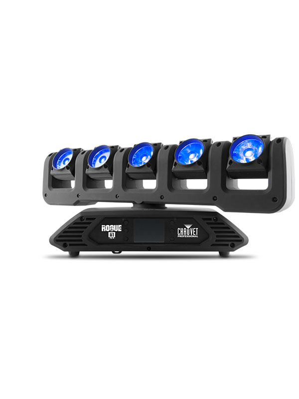 Rogue R1 FX-B shakes things up, five times over. It orchestrates an infinite rotation of both pan and tilt for its five individually controlled heads, powered by five pixel mappable 15 W RGBW LEDs. Crisp beams, a sizzling output and rocket quick movements create amazing aerial effects. Control is achieved with DMX, Art-Net, sACN, or Kling-Net.